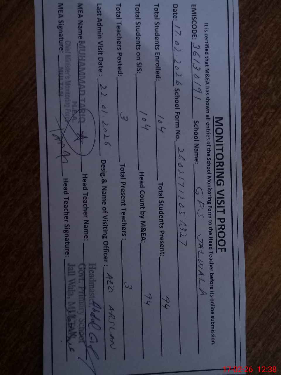 | EMIS Code: 36130191 | Name of School: GPS JALWALA P/O JALWALA | |||