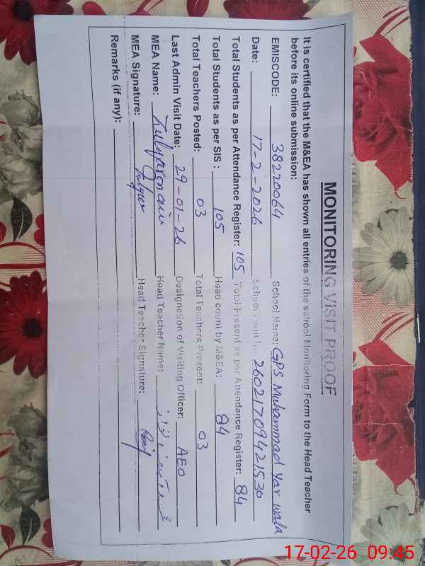 | EMIS Code: 38220064 | Name of School: GPS MUHAMMAD YAR WALA | |||