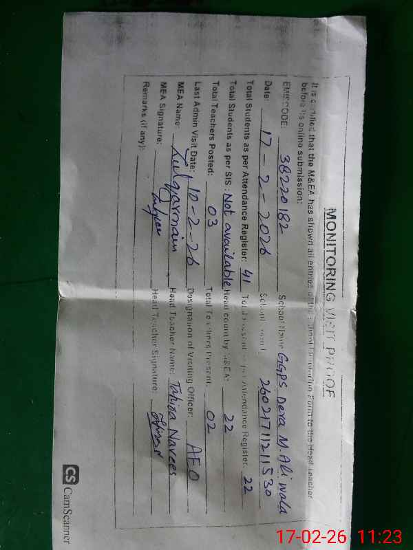 | EMIS Code: 38220182 | Name of School: GGPS DERA MUHAMMAD ALI WALA | |||