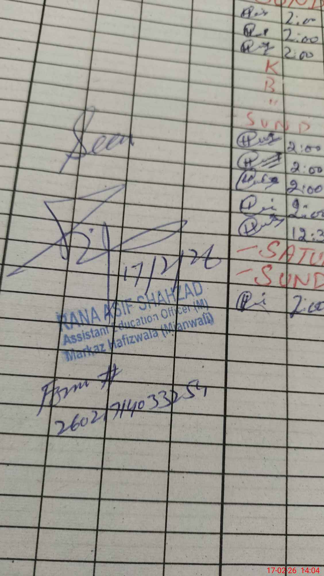 | Name: FA**** BI**** JA**** Designation: (School Headmaster's/Headmistress's) PST Phone/Cell Number: 03**** |