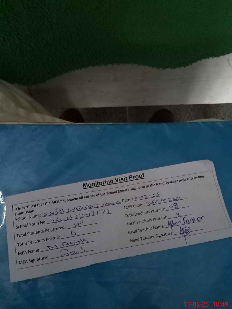 | EMIS Code: 36610266 | Name of School: GGPS GARDAZ WALA | |||