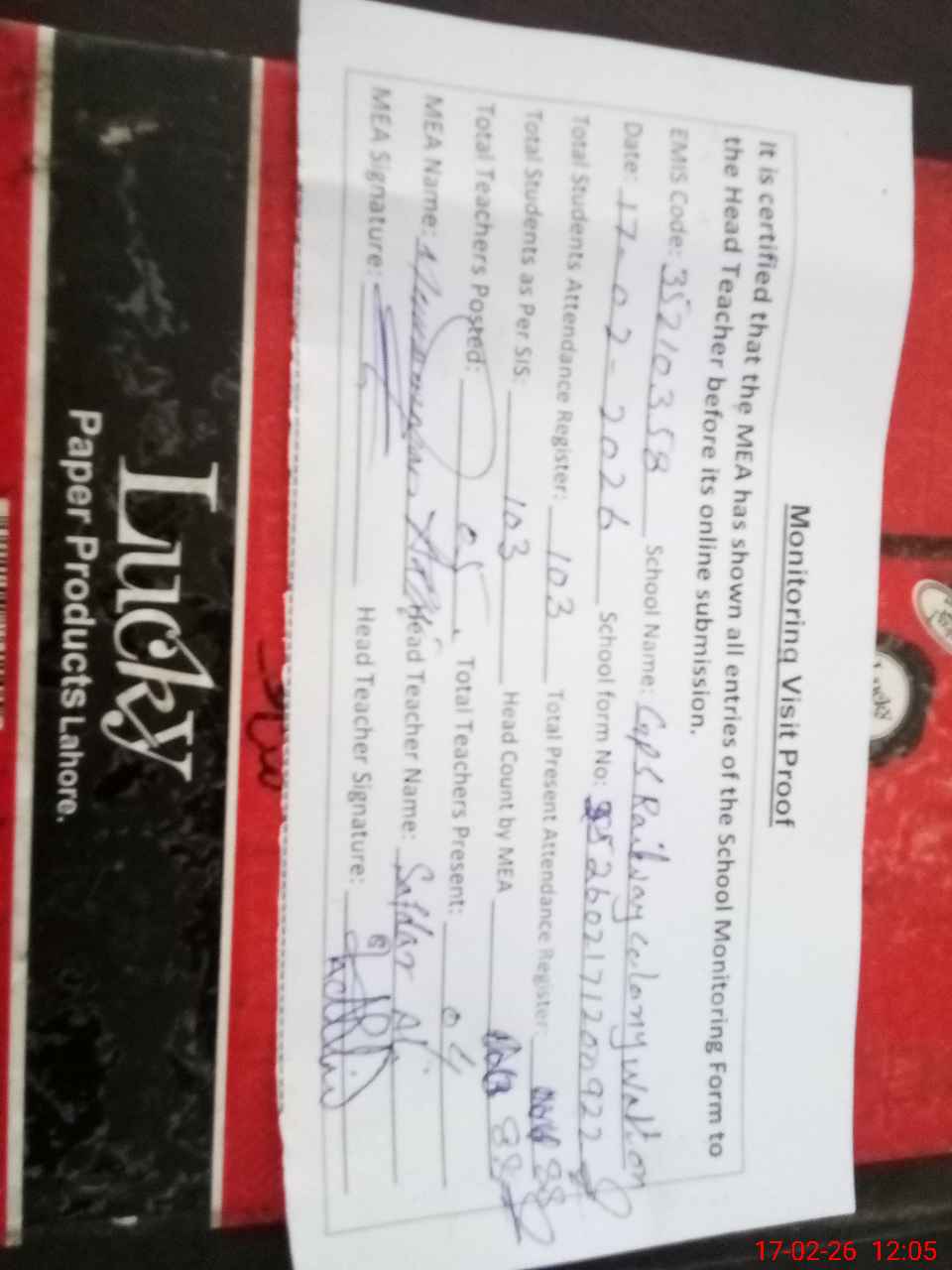 | EMIS Code: 35210358 | Name of School: GPS RAILWAY COLONY WALTON | |||