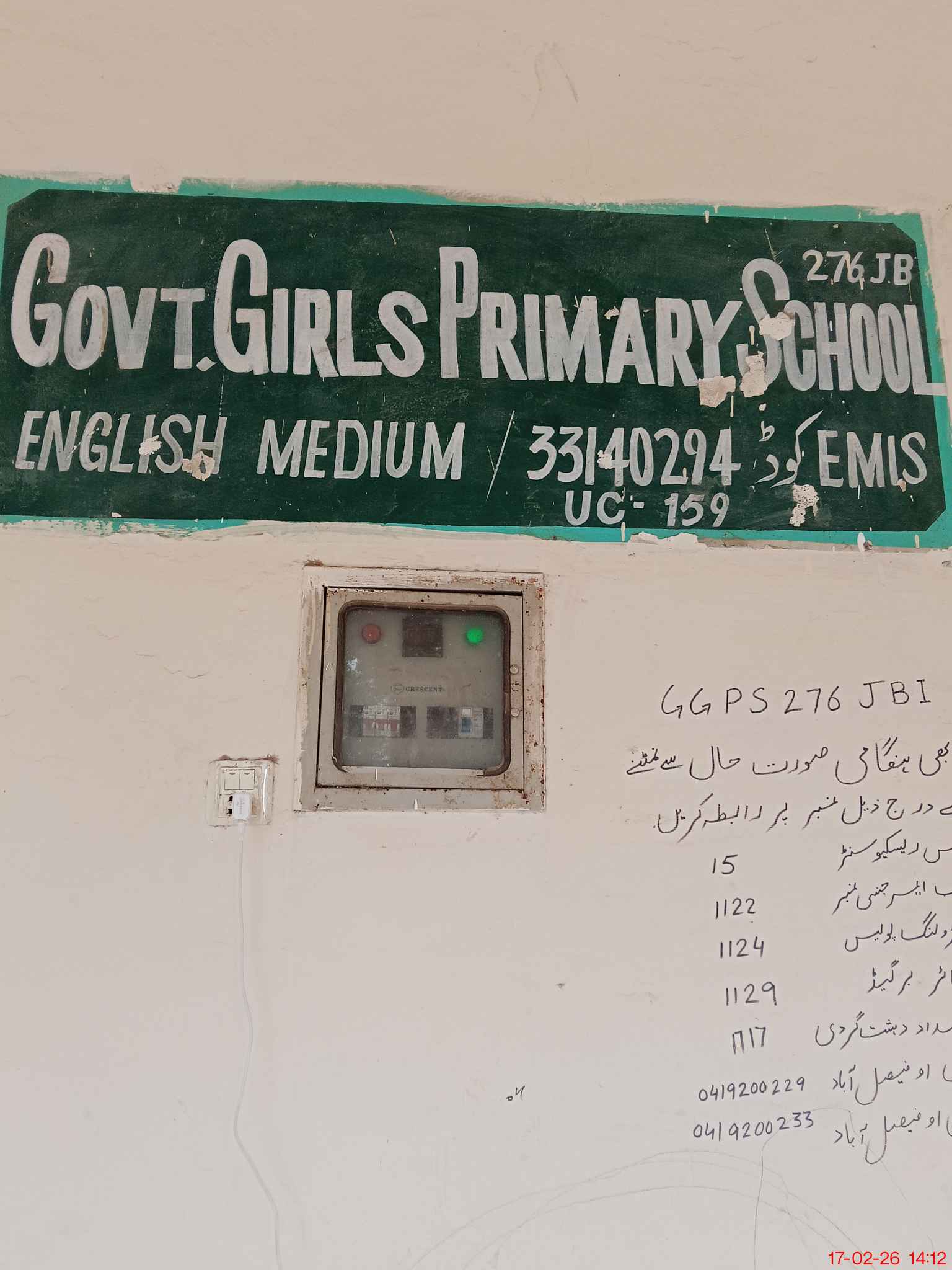 | EMIS Code: 33140294 | Name of School: GGPS CHAK NO. 276 JB I | |||