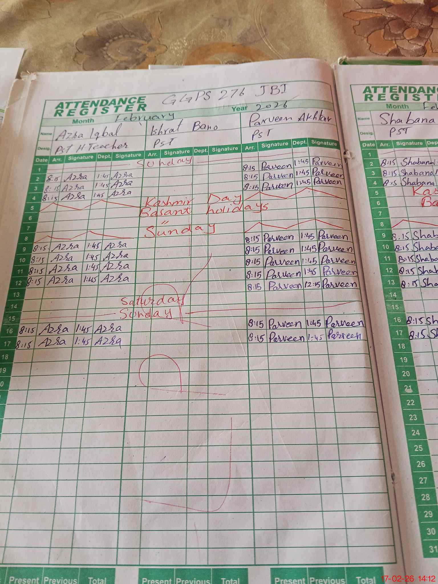 | No. of Students Present - Female | 0 | 23 | 22 | 14 | 20 | 18 | 10 | 134 | ||||||||