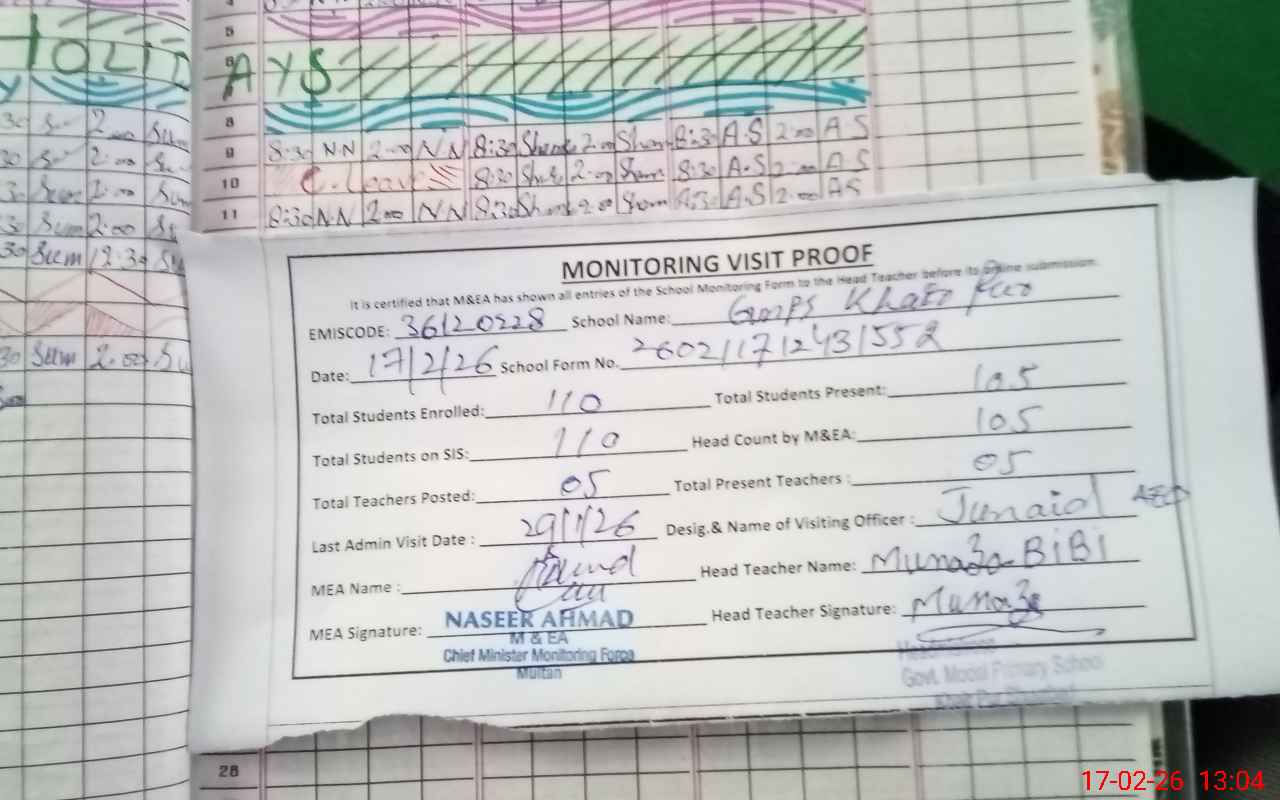 | EMIS Code: 36120228 | Name of School: GMPS KHAIR PUR SHUJABAD | |||