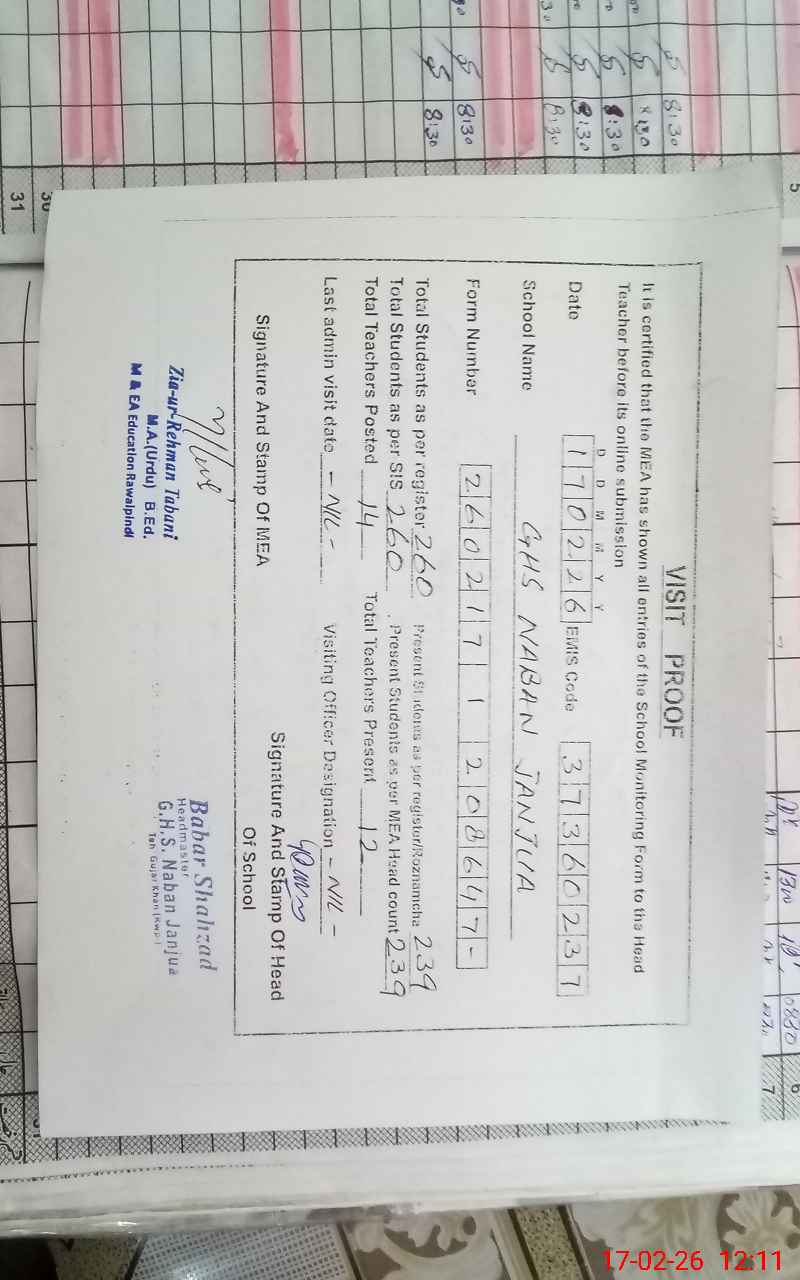 | EMIS Code: 37360237 | Name of School: GHS NABAN JANJUA | |||