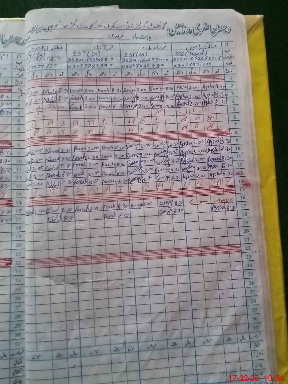 | Name: AY**** AM**** Designation: (School Headmaster's/Headmistress's) S.S.T. Phone/Cell Number: 03**** |
