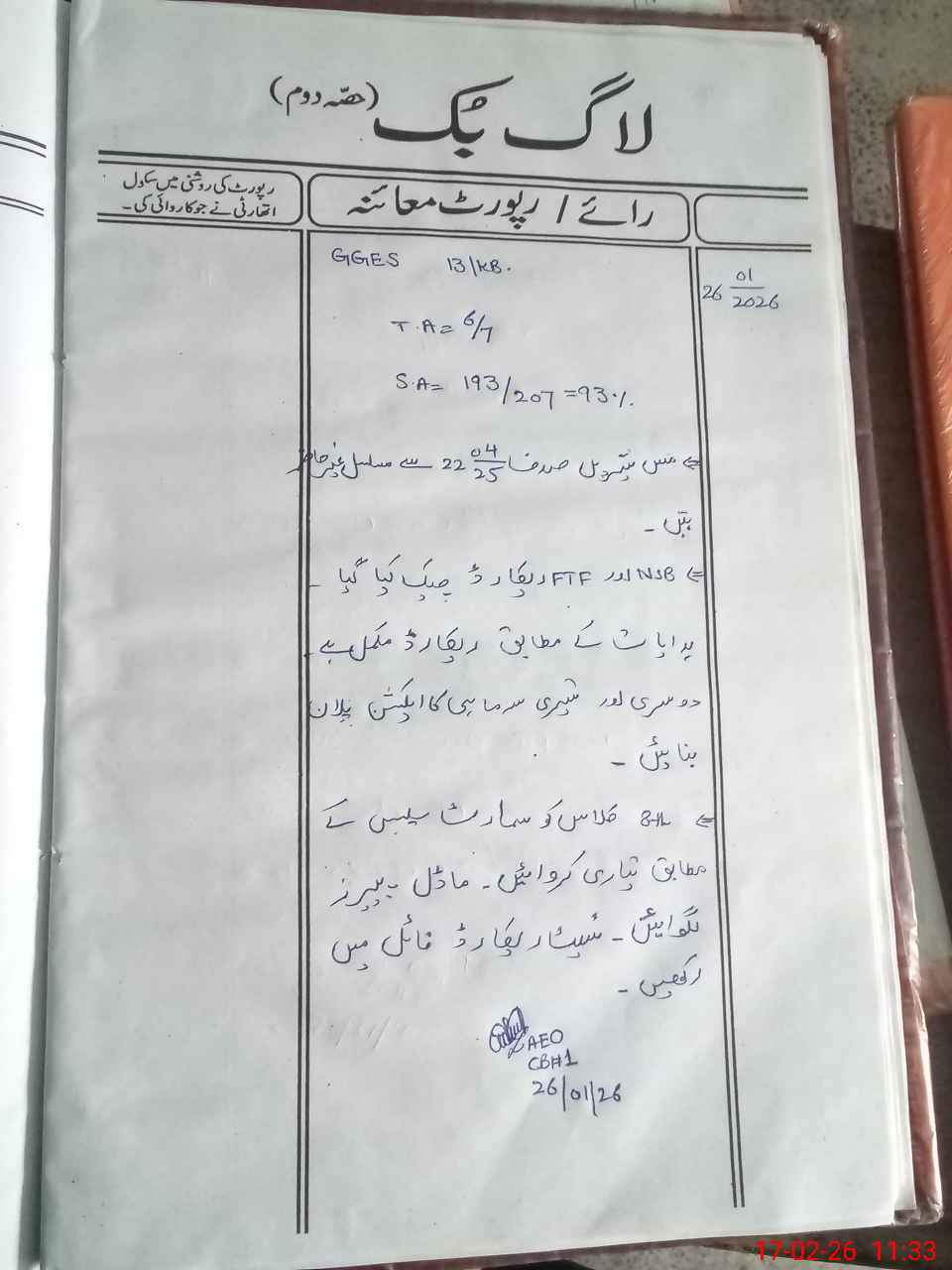 | Certified that this School was Inspected by the Undersigned MEA/DMO Today and the Information Stated Above is as Per Record. | |||||