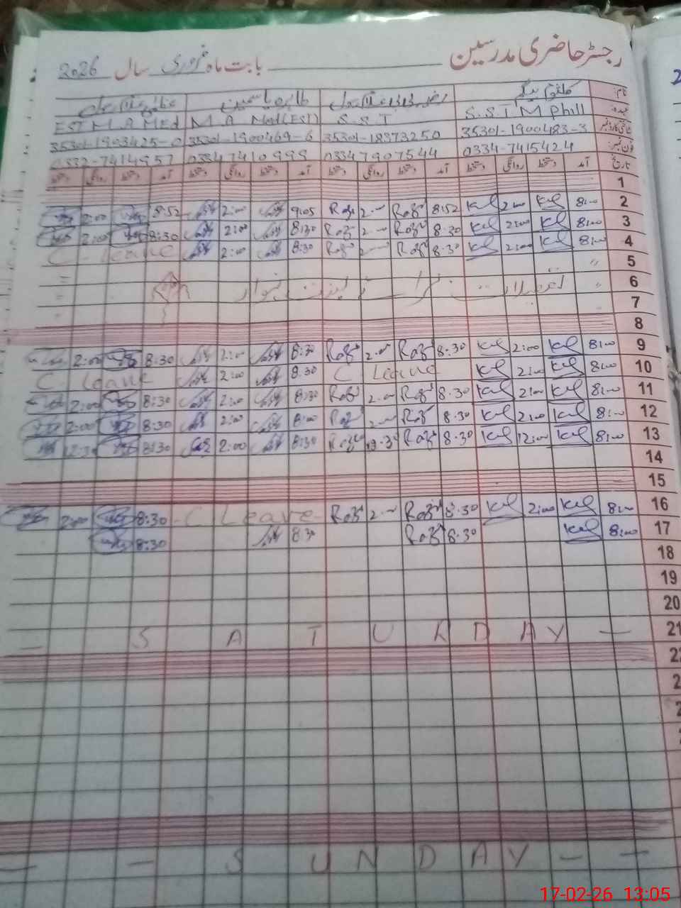| 38**** | Ha**** Ul**** Kh**** | Temporary | 1 | 0 | 0 | 0 | 0 | 0 | 0 | 0 | 1 | Casual | |
