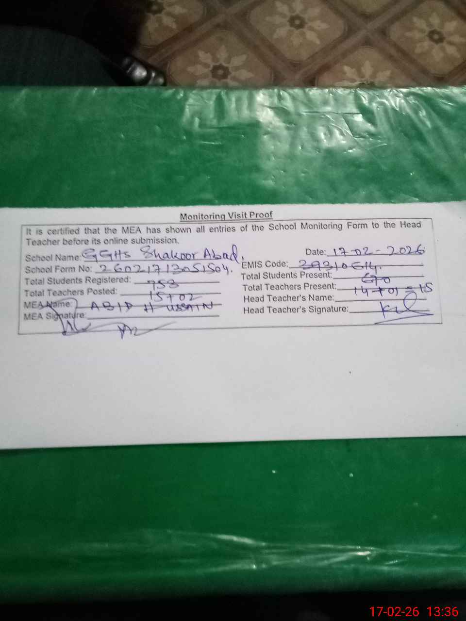 | EMIS Code: 39310614 | Name of School: GGHS SHAKOOR ABAD | |||