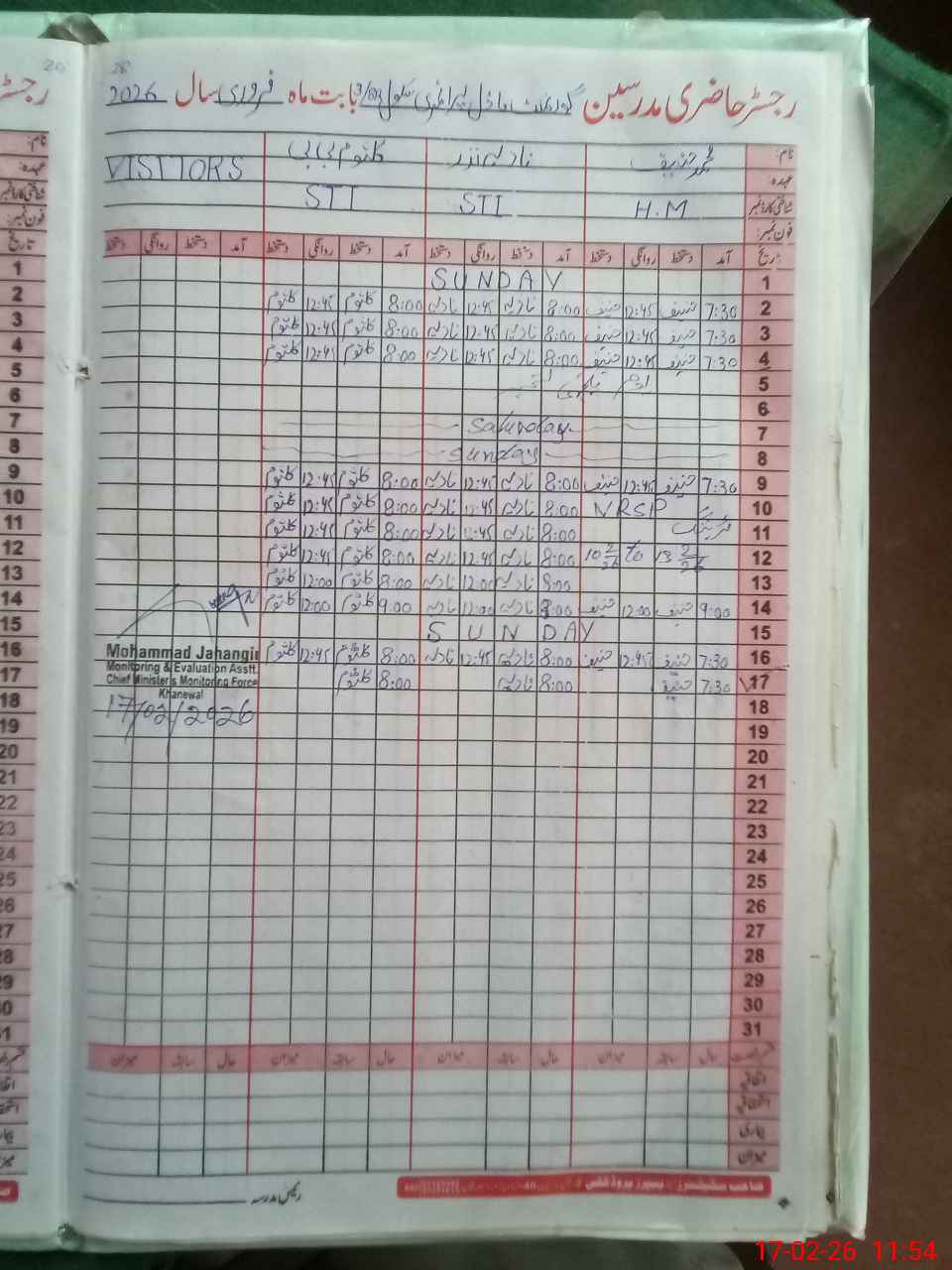 | Monitoring Date: 17-02-2026 | Start Time: 17-02-2026 10:51 AM | End Time: 17-02-2026 12:12 PM | Name of MEA: Mu**** Ja**** | |