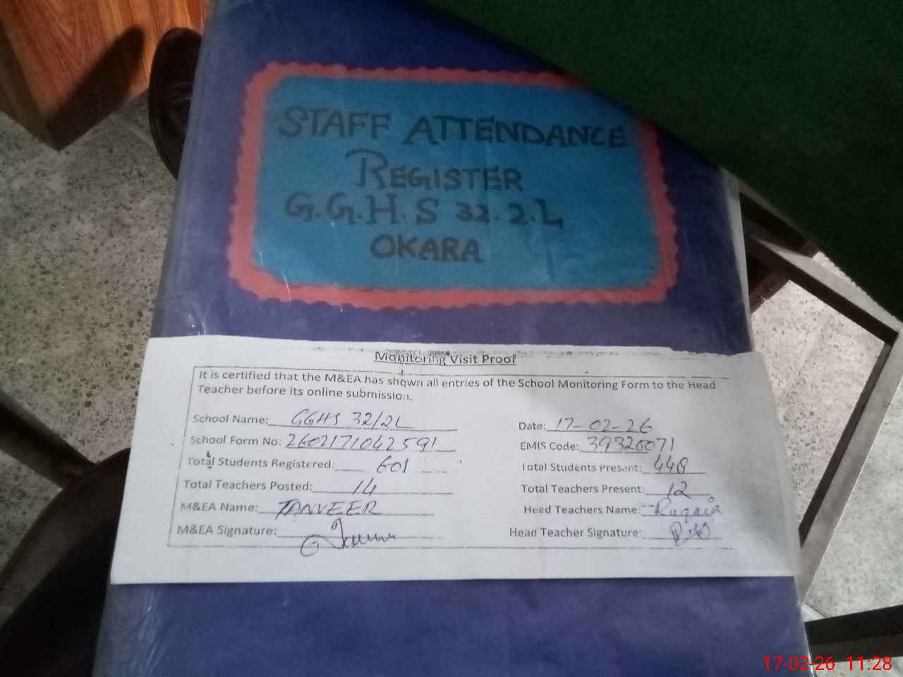 | EMIS Code: 39320071 | Name of School: GGHS CHAK NO. 32/2-L | |||