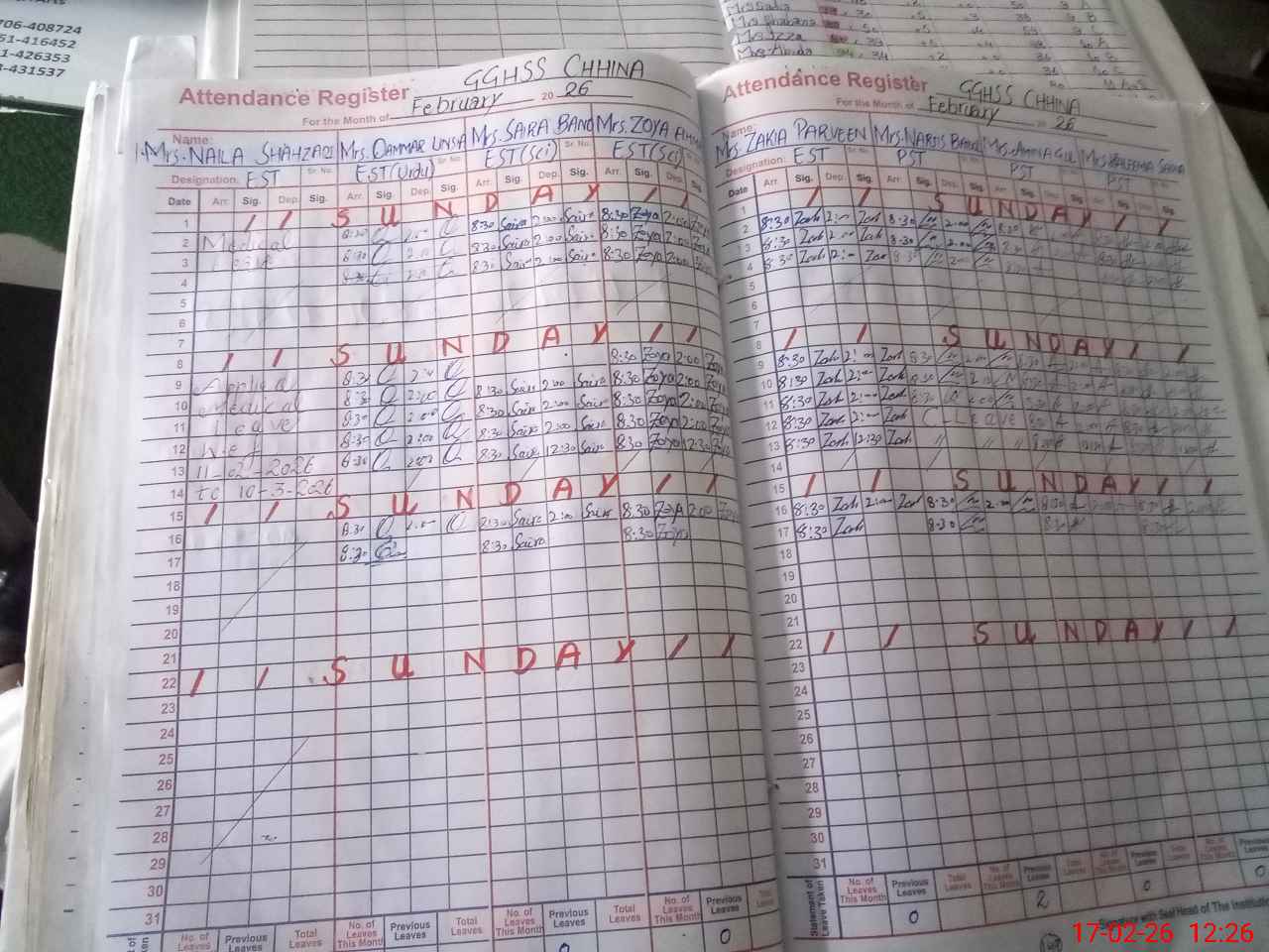 | Leave | Duty | Absent | Maternity | Medical | Ex- Pak |