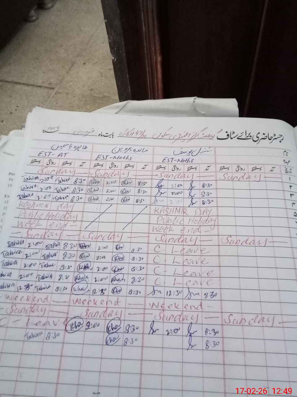 | CNIC | Full Name | Designation | R/C | Absence During Last Calender Month |
