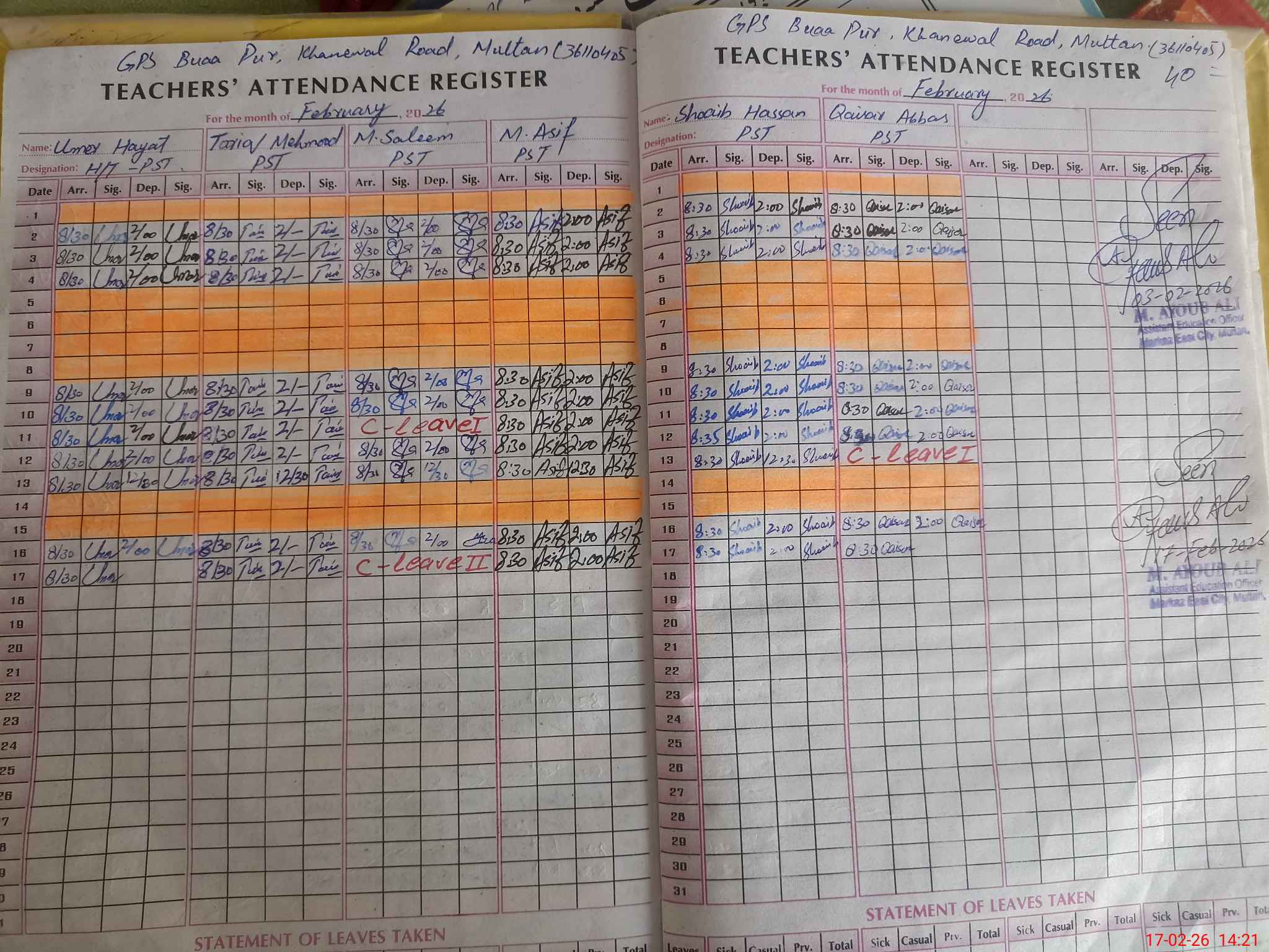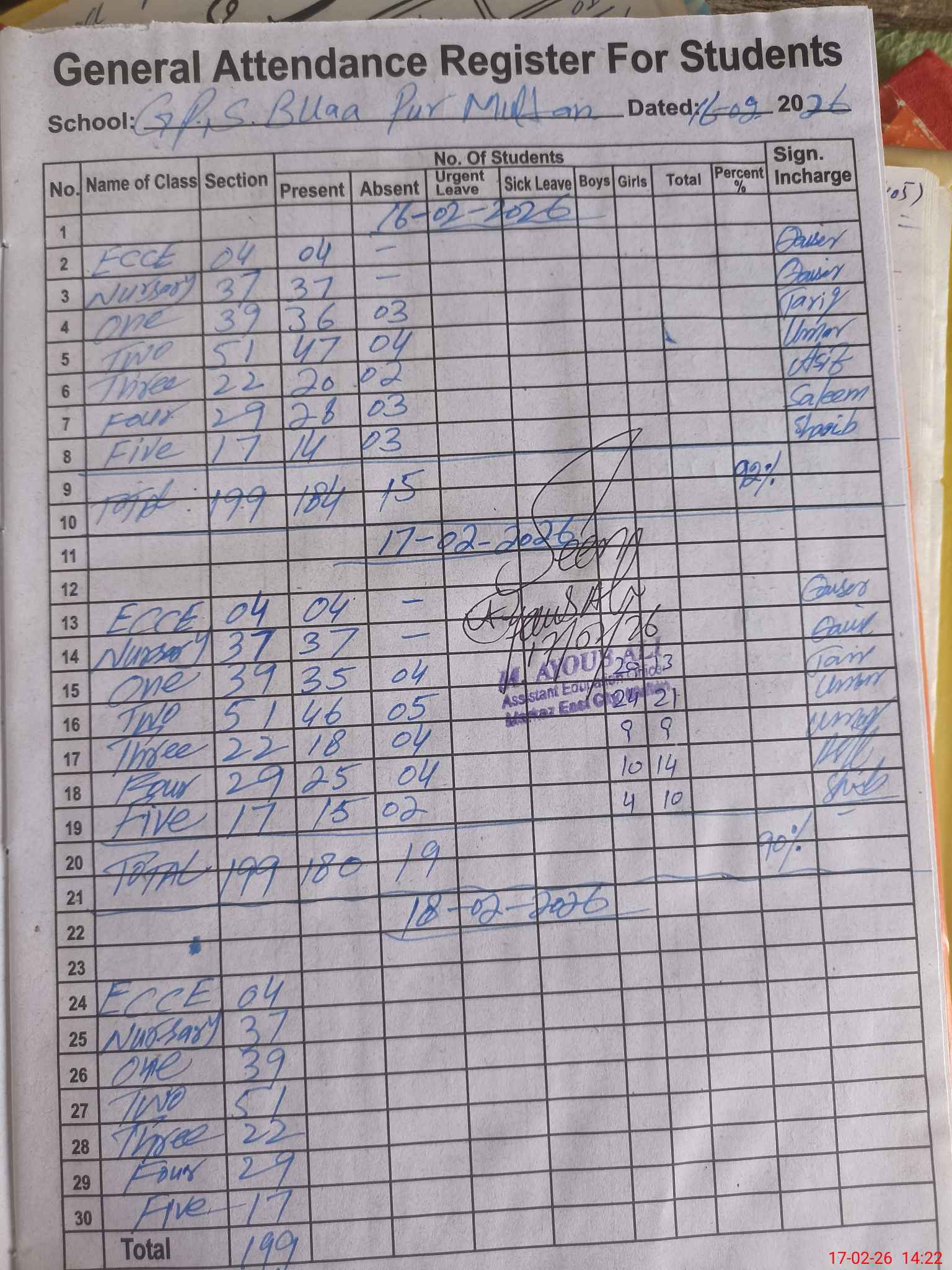| EMIS Code: 36110405 | Name of School: GPS BUAA PUR KHANEWAL ROAD | |||