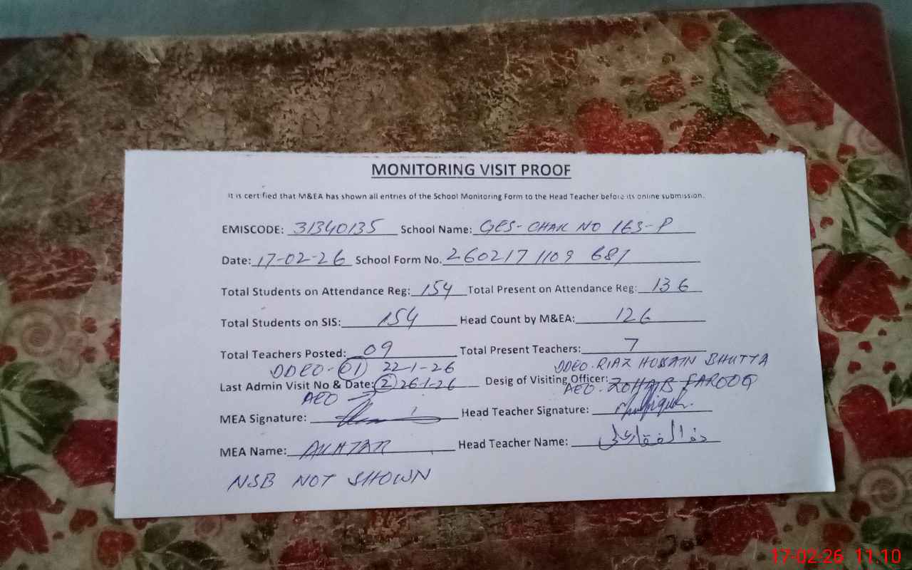 | EMIS Code: 31340135 | Name of School: GES CHAK NO 163/P | |||