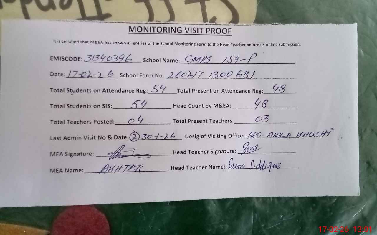 | EMIS Code: 31340396 | Name of School: GMPS 159/P | |||