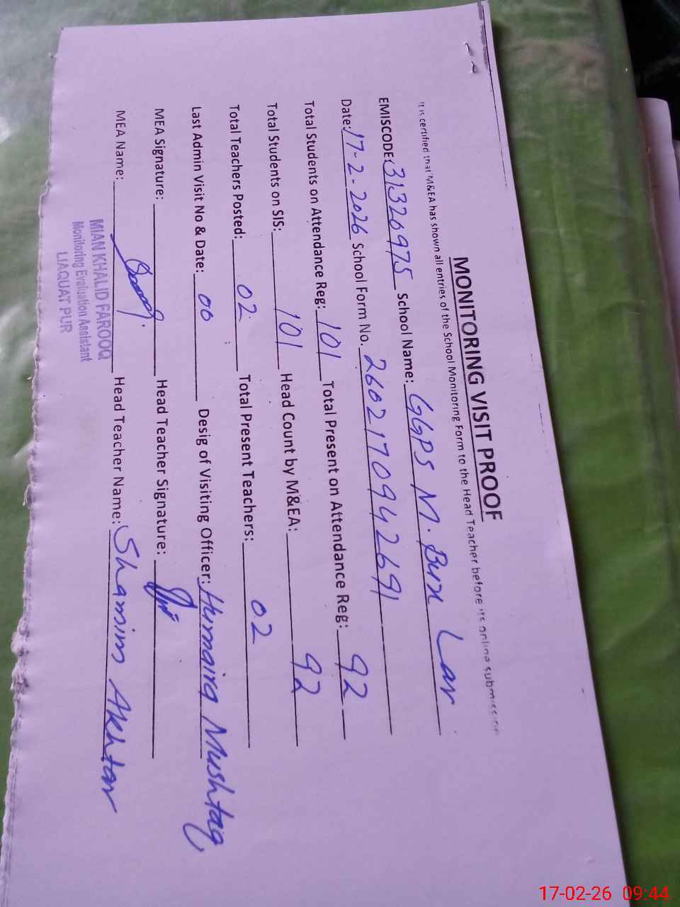 | EMIS Code: 31320975 | Name of School: GGPS MUHAMMAD BUX LAR | |||