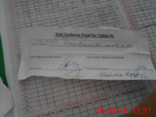 | Attendance Register | Head Teacher | MEA with School | Visit Proof |