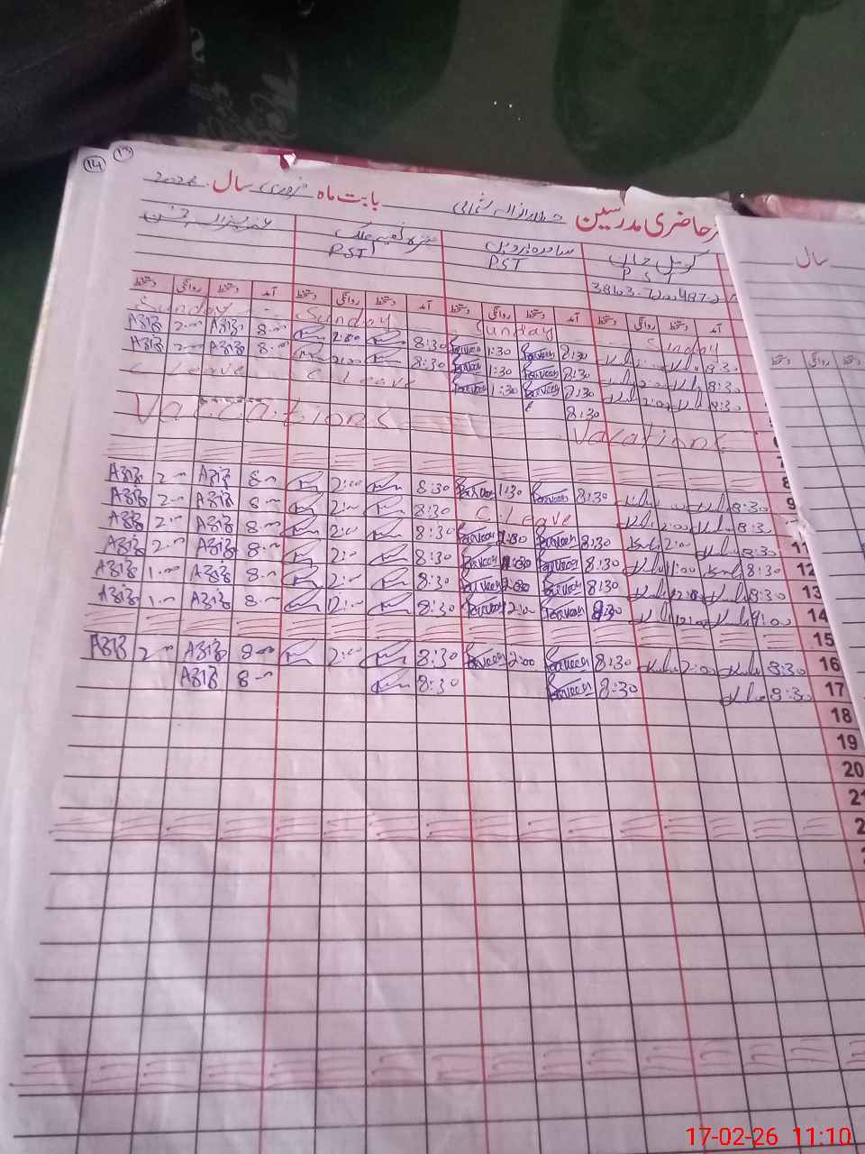 | CNIC | Full Name | Designation | R/C | Absence During Last Calender Month |
