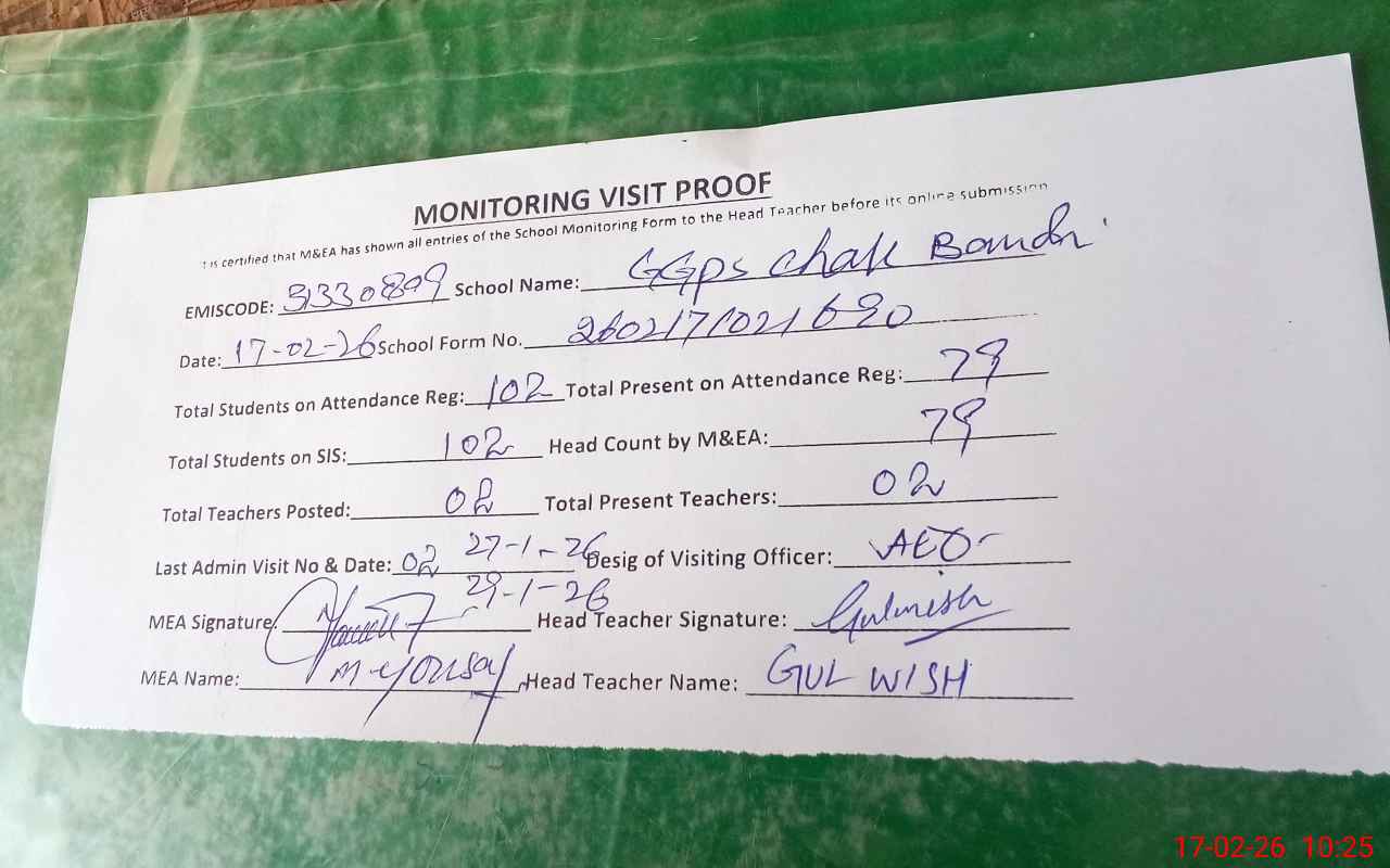 | EMIS Code: 31330809 | Name of School: GGPS CHAK BANDI | |||