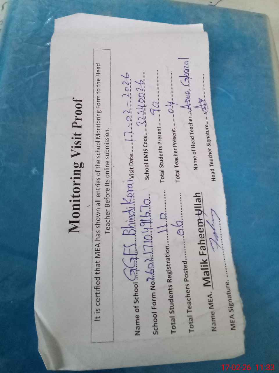 | EMIS Code: 32340026 | Name of School: GGES BHINDI KORAI | |||