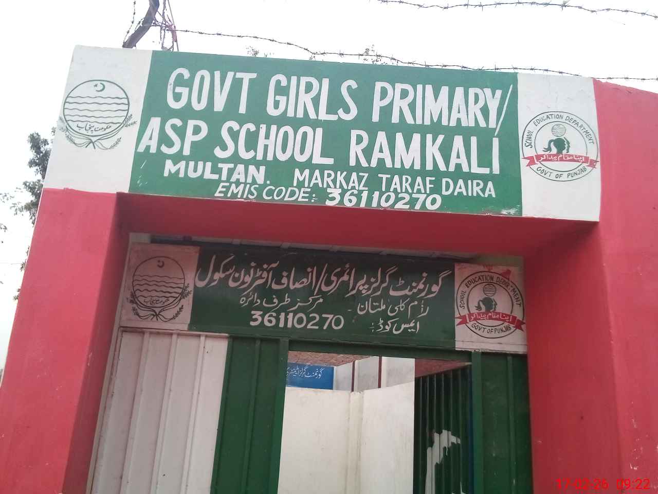 | EMIS Code: 36110270 | Name of School: GGPS RAM KALI NEAR BAHAWALPUR BYPASS | |||