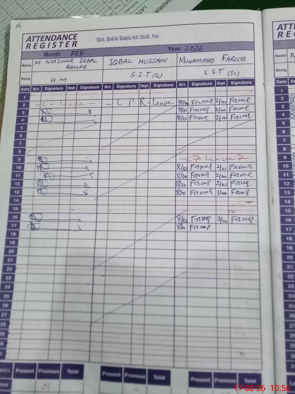 | CNIC | Full Name | Designation | R/C | Absence During Last Calender Month |
