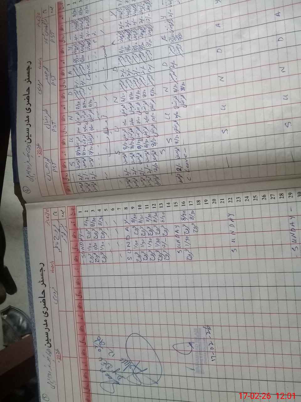 | CNIC | Full Name | Designation | R/C | Absence During Last Calender Month |