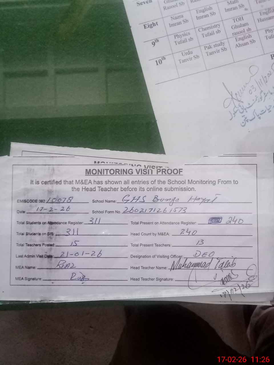 | EMIS Code: 39210078 | Name of School: GHS BUNGA HAYAT | |||