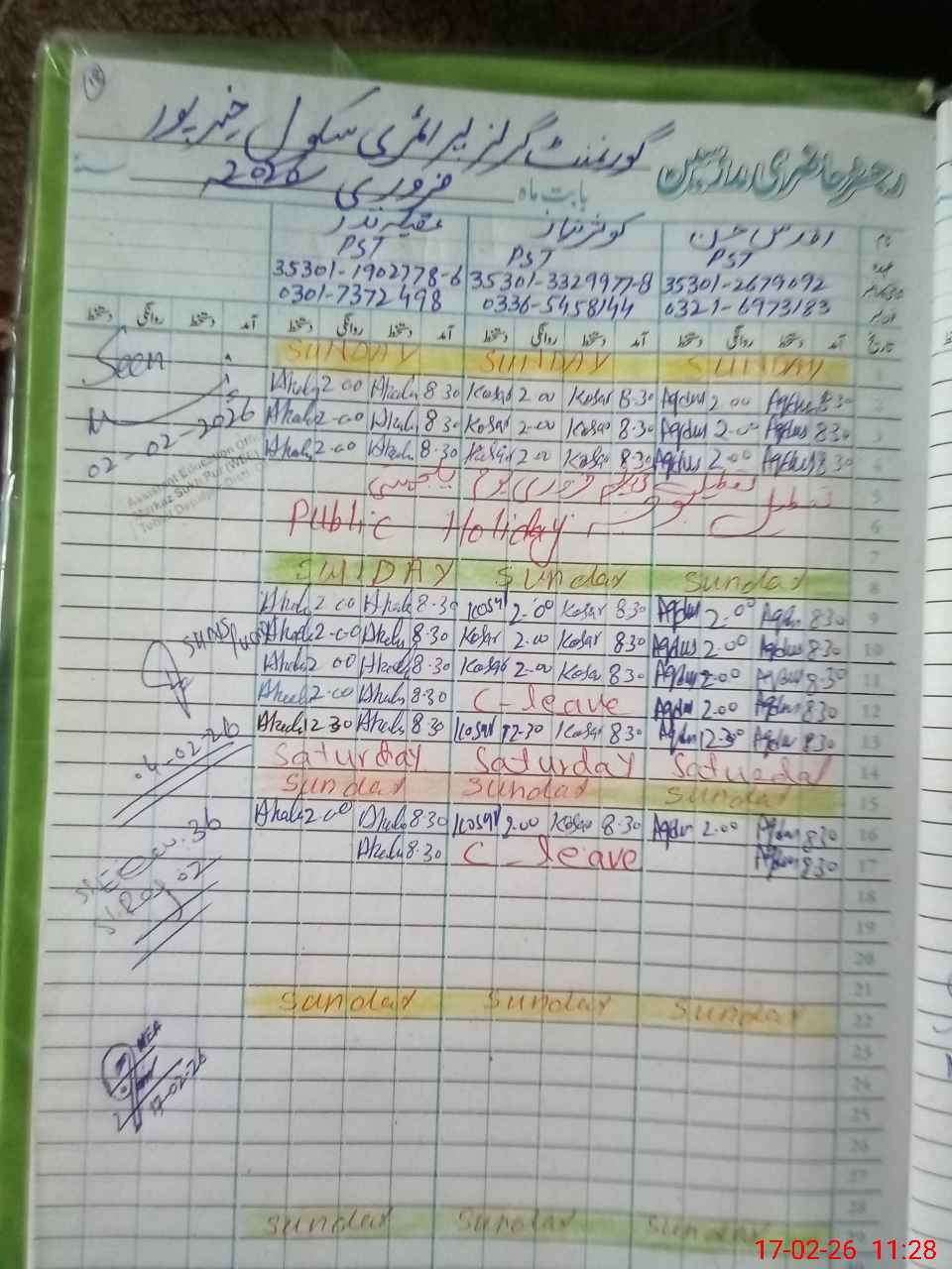 | CNIC | Full Name | Designation | R/C | Absence During Last Calender Month |