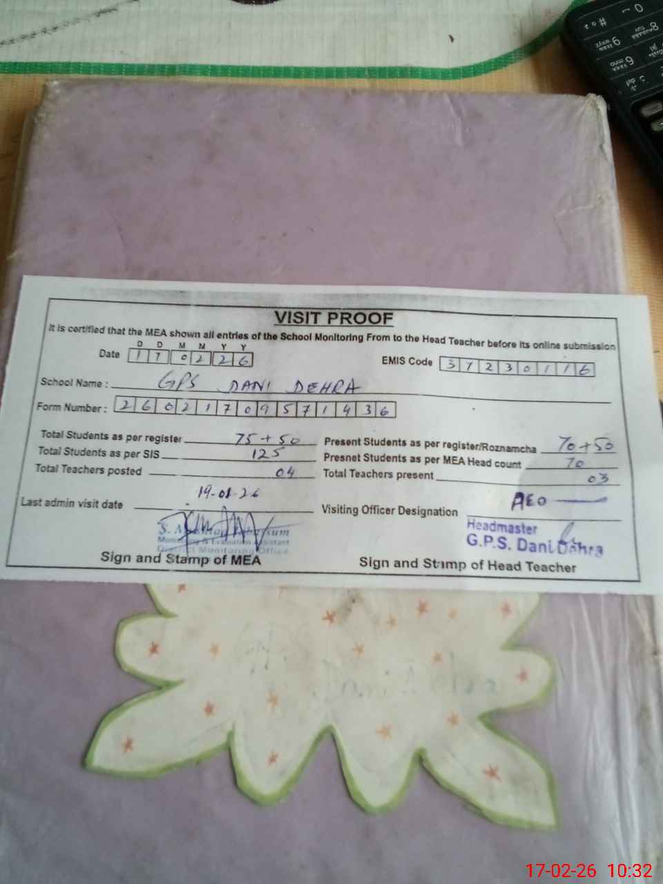| EMIS Code: 37230116 | Name of School: GPS DANI DEHRA | |||