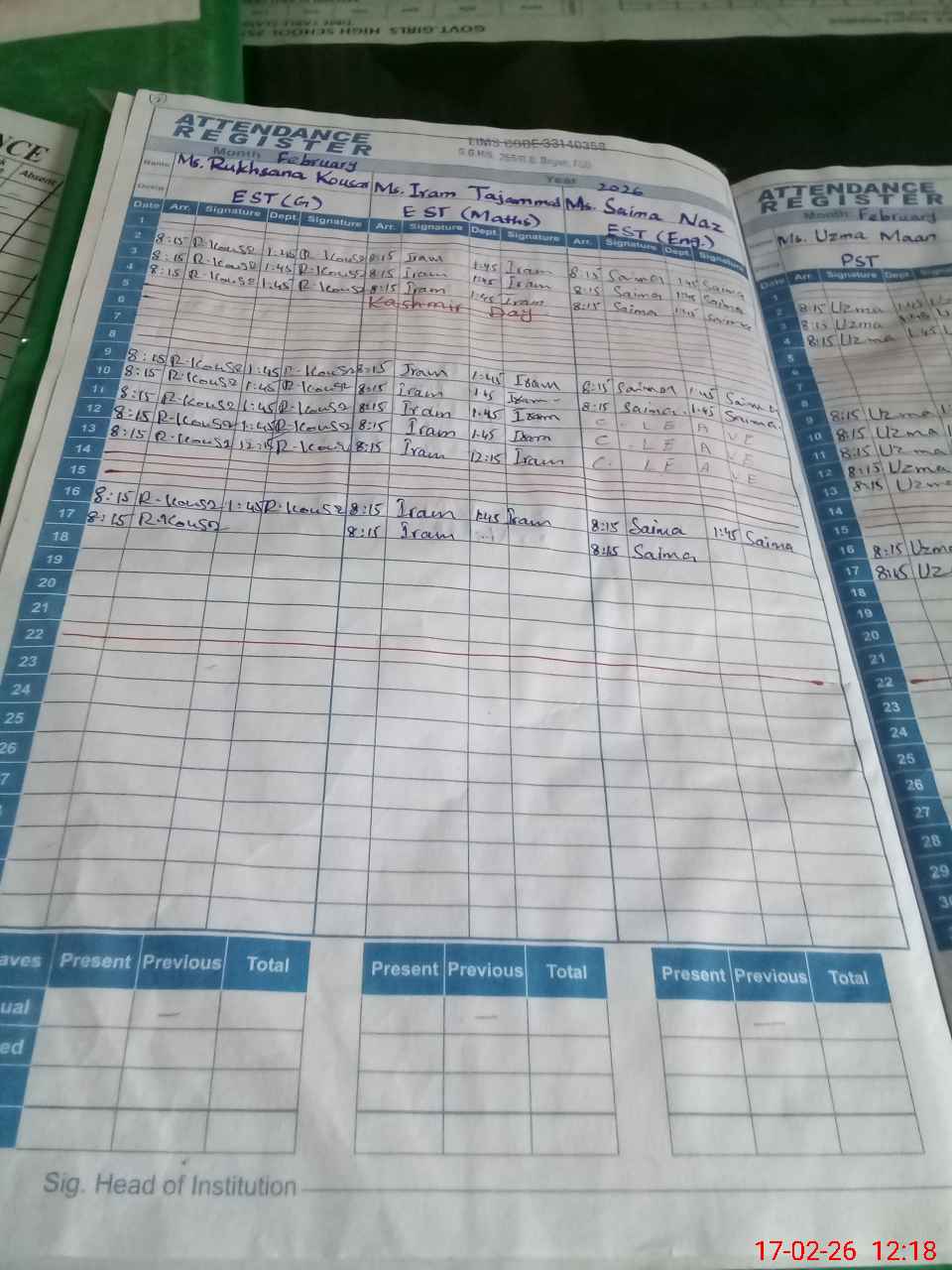 | No. of Students Present - Male | 0 | 1 | 1 | 0 | 0 | 0 | 0 | 0 | 0 | 0 | 0 | 0 | 3 | |||