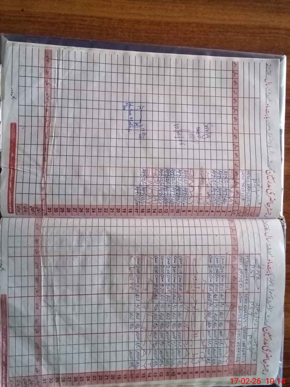 | CNIC | Full Name | Designation | R/C | Absence During Last Calender Month |