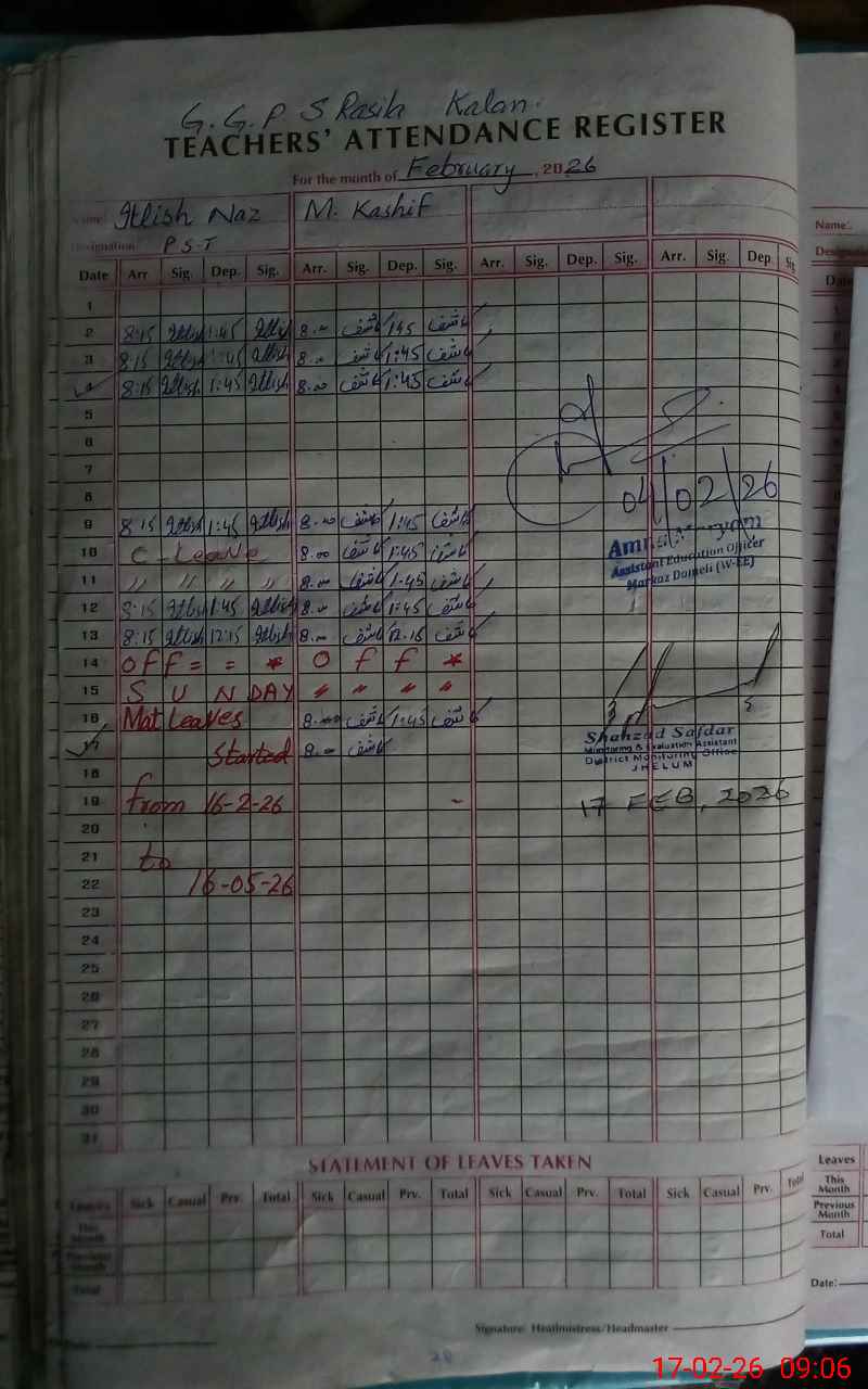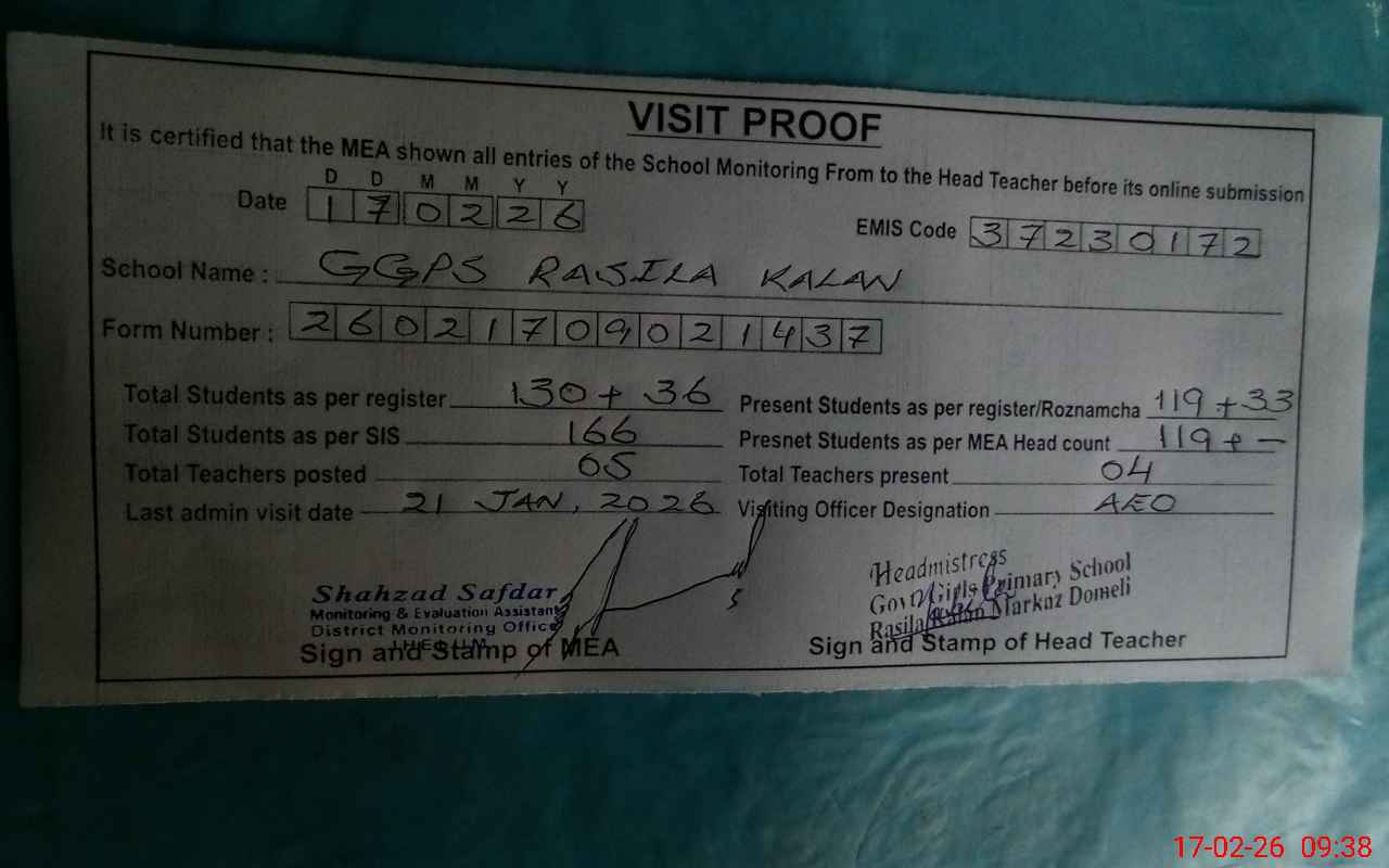 | Attendance Register | Head Teacher | MEA with School | Visit Proof |