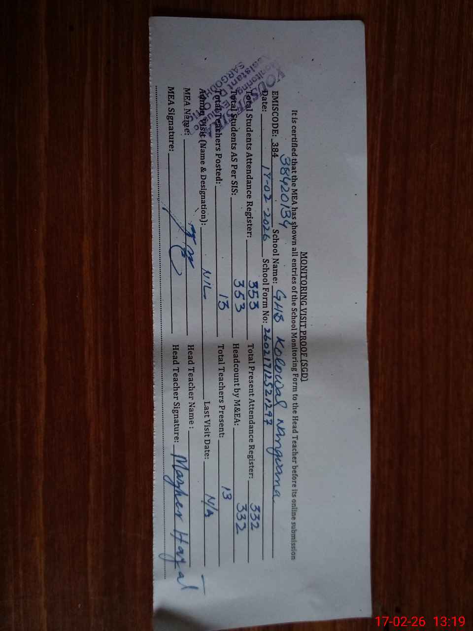 | EMIS Code: 38420134 | Name of School: GHS KOLOWAL NANGIANA | |||