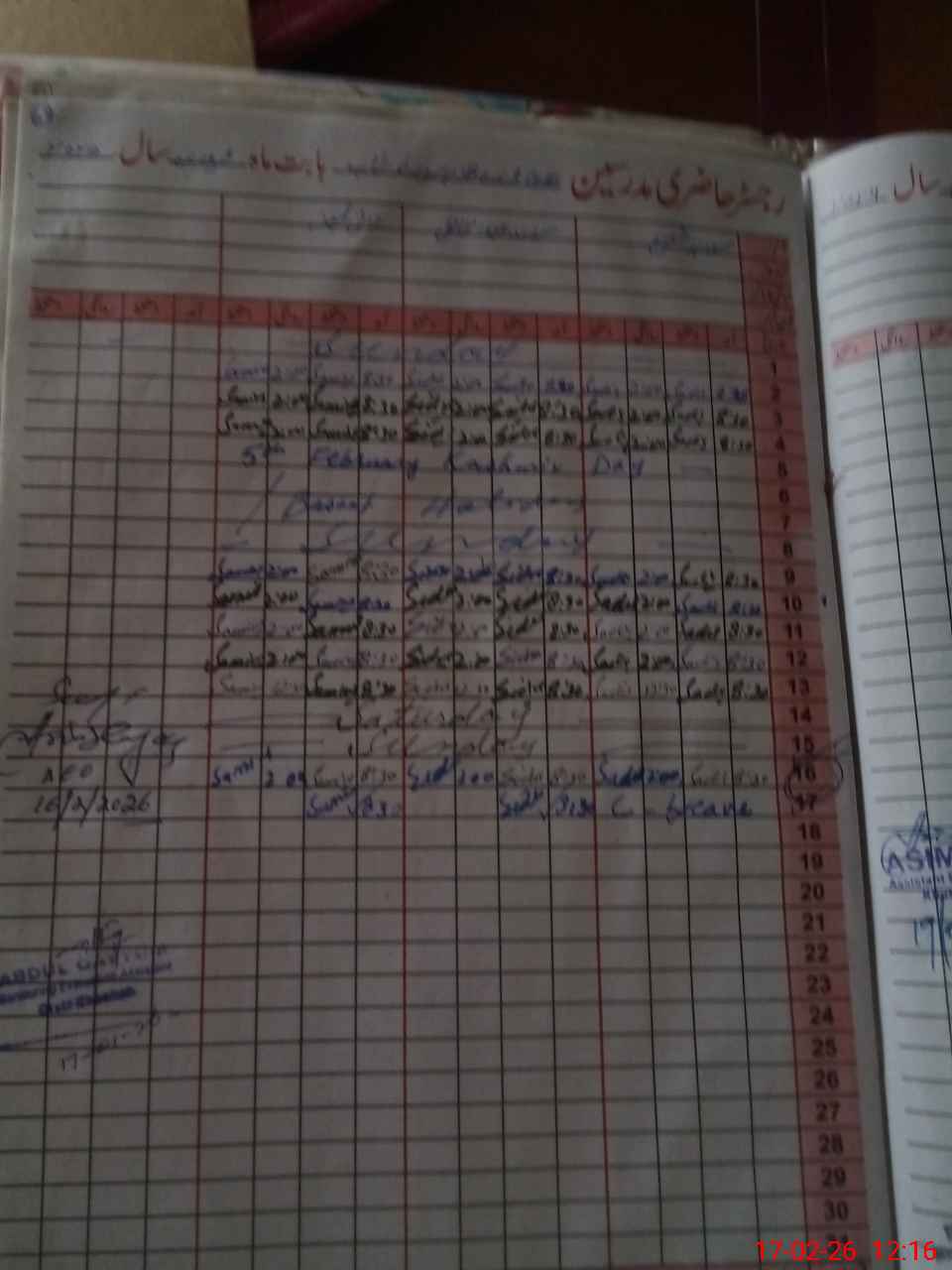 | CNIC | Full Name | Designation | R/C | Absence During Last Calender Month |