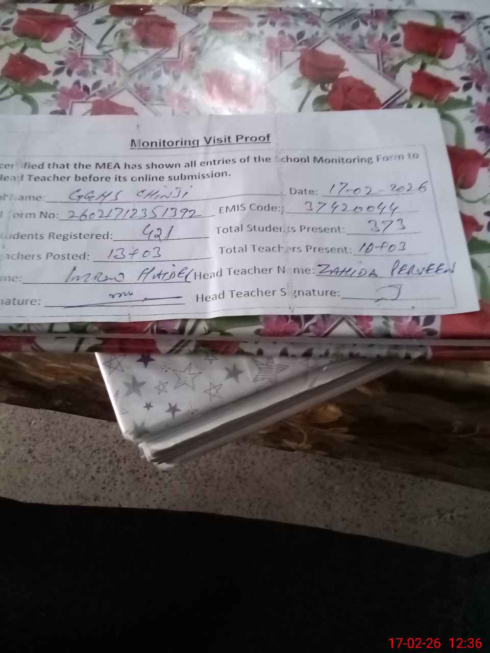 | EMIS Code: 37420044 | Name of School: GGHS CHINJI | |||