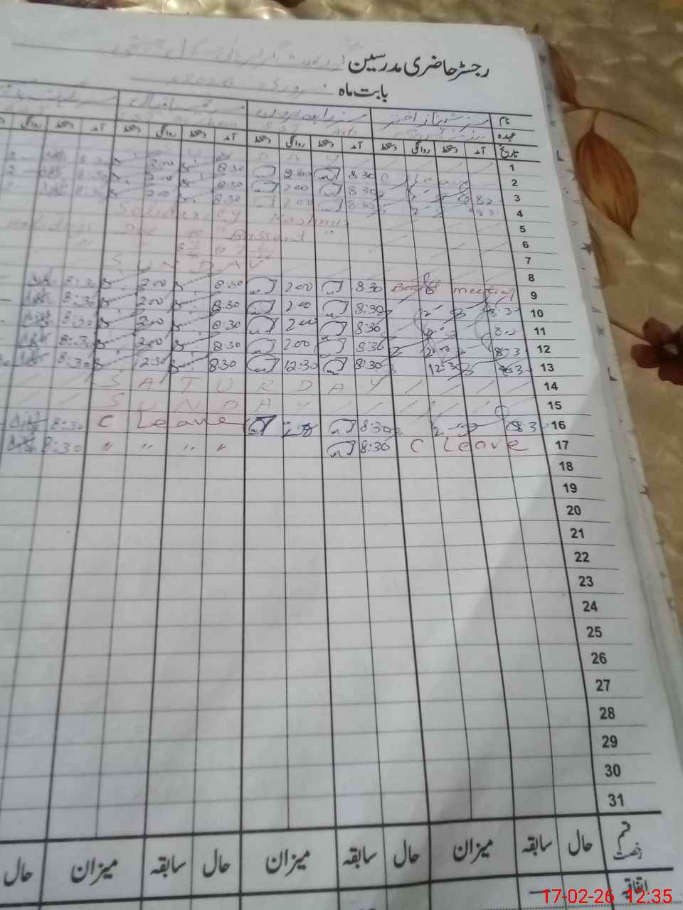 | 37**** | Sa**** Ak**** | PST Arts | Regular | 0 | 0 | 0 | 0 | 0 | 0 | 0 | 0 | 0 | Absent (Un-Authorized) |