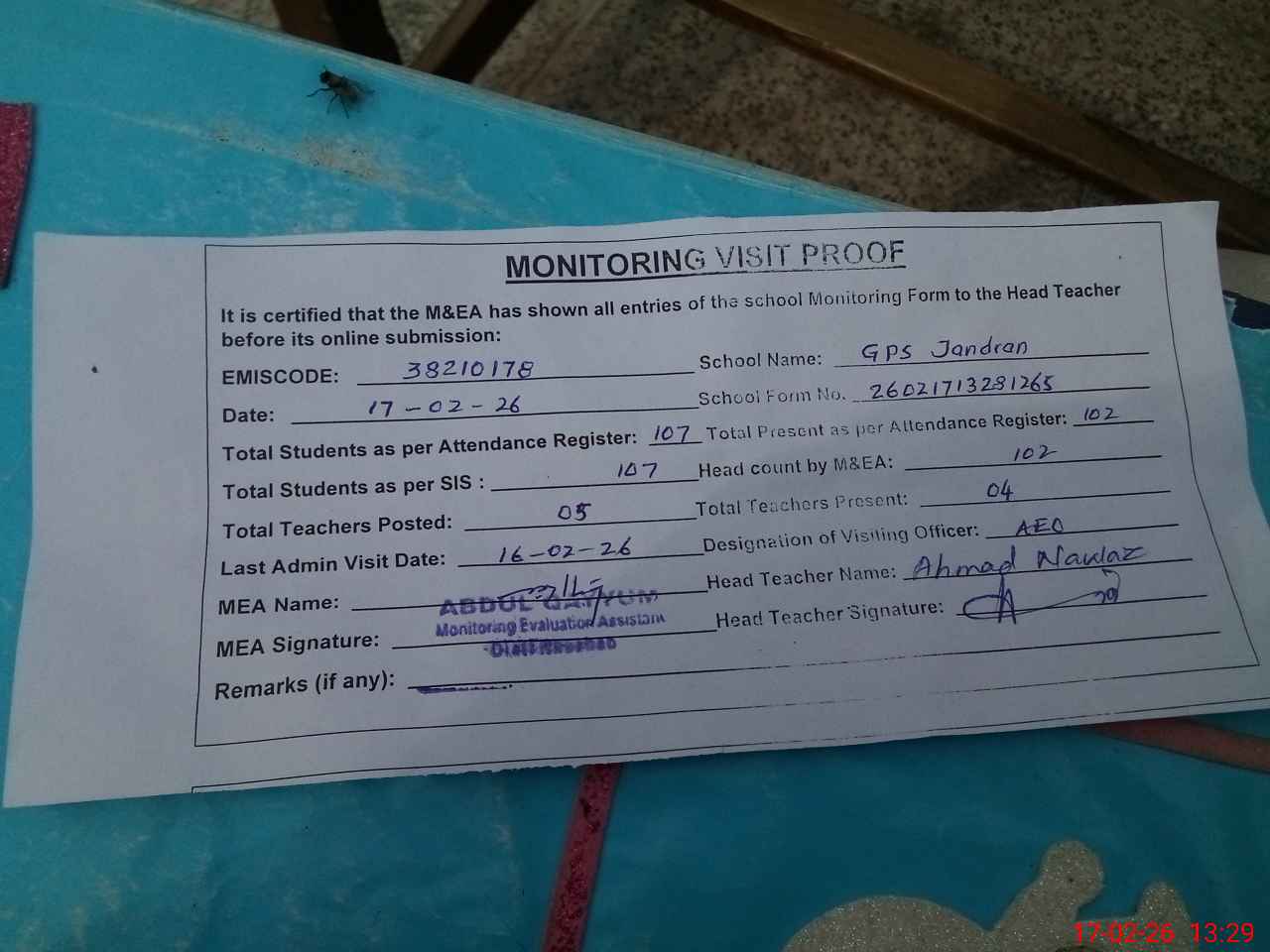 | EMIS Code: 38210178 | Name of School: GPS JANDRAN | |||