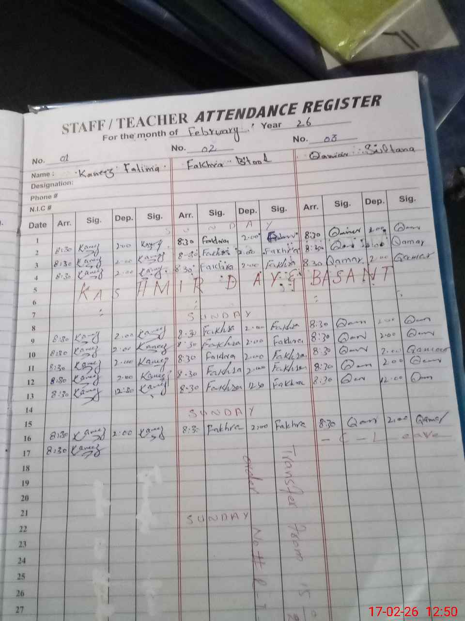 | Name: Ka**** Fa**** Designation: (School Headmaster's/Headmistress's) Head Mistress Phone/Cell Number: 03**** |