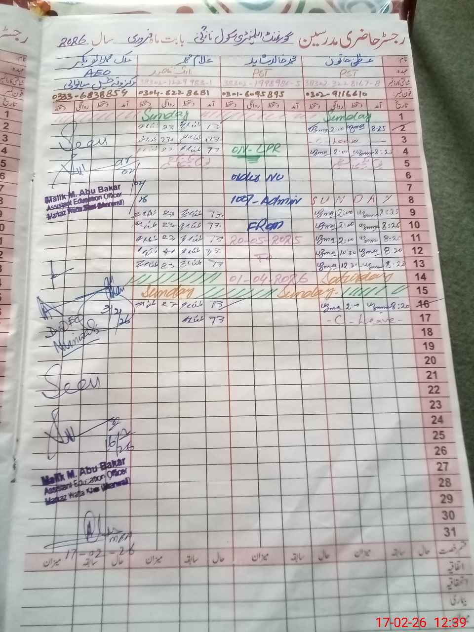 | Name: GH**** FA**** KH**** Designation: (School Headmaster's/Headmistress's) SST( SC ) Phone/Cell Number: 03**** |