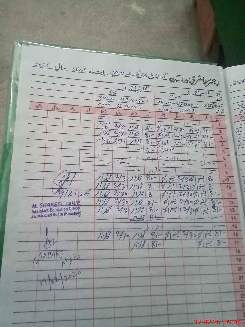 | Remarks (Use Separate Page if Required): no teacher absent total students on register 260 total students on SiS 260 last admin visit by AEO on 09 Feb 2026 | |||||