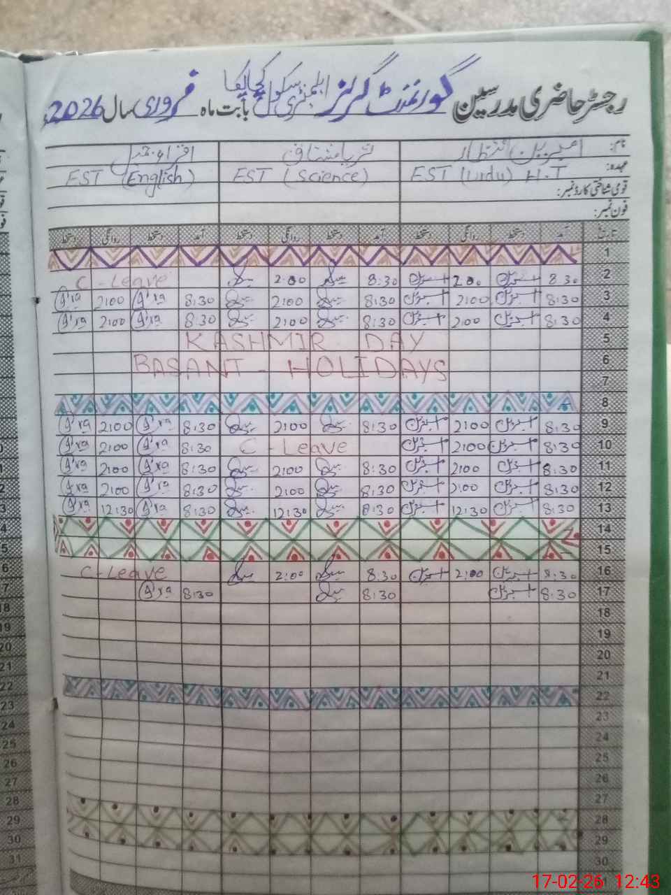 | Name: Am**** In**** Designation: (School Headmaster's/Headmistress's) HM IC EST Urdu Phone/Cell Number: 03**** |
