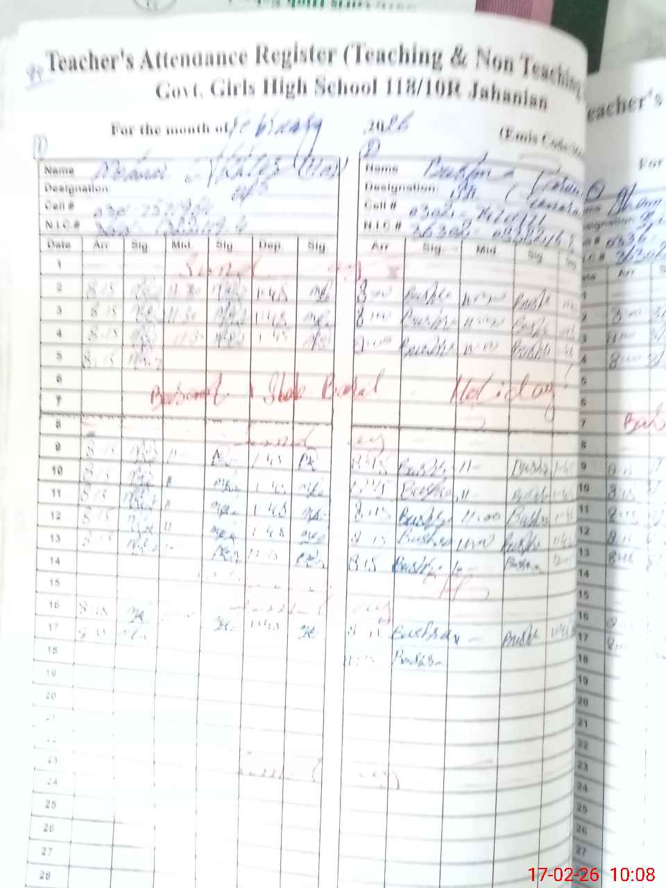 | CNIC | Full Name | Designation | R/C | Absence During Last Calender Month |