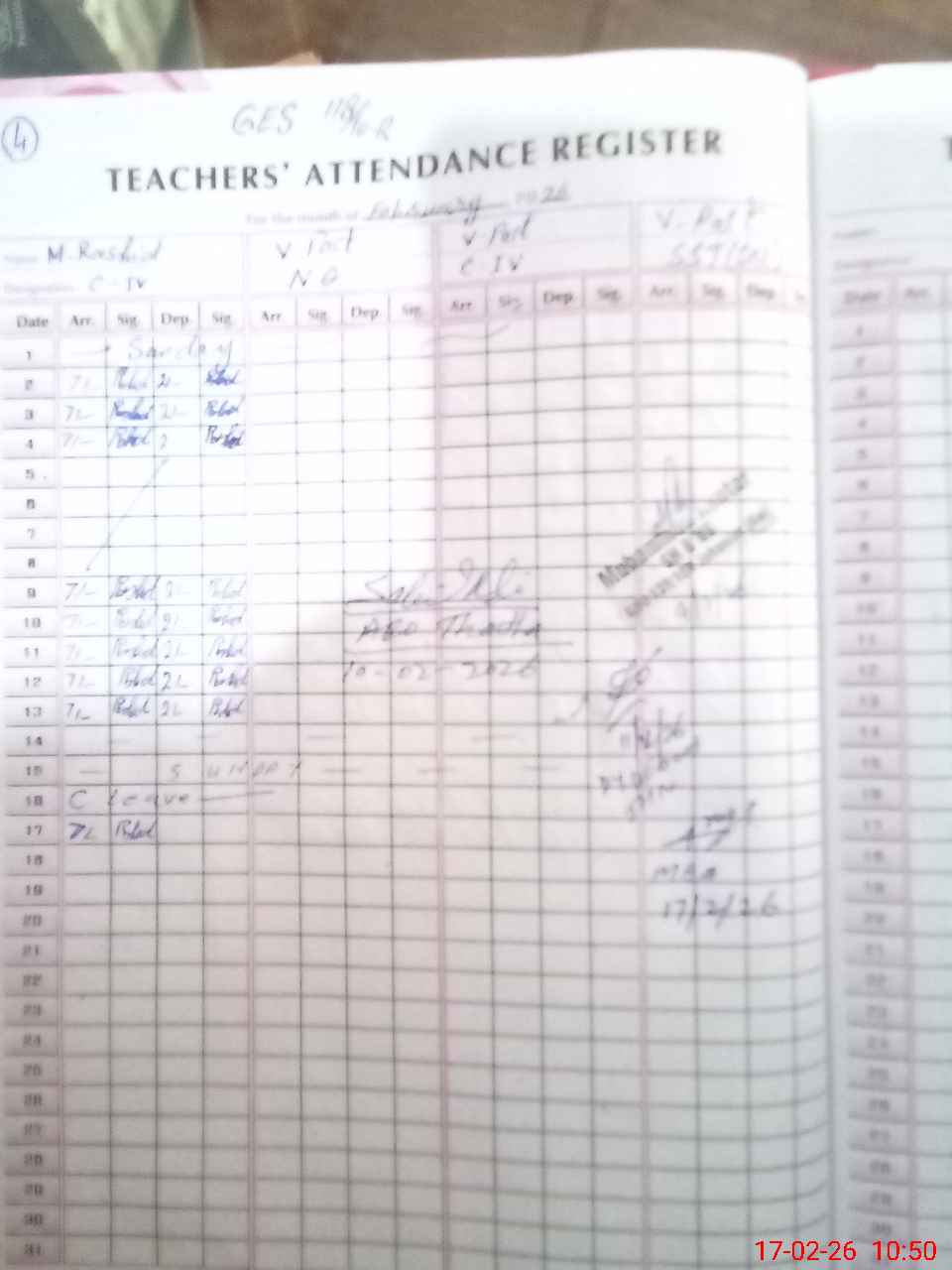 | CNIC | Full Name | Designation | R/C | Absence During Last Calender Month |