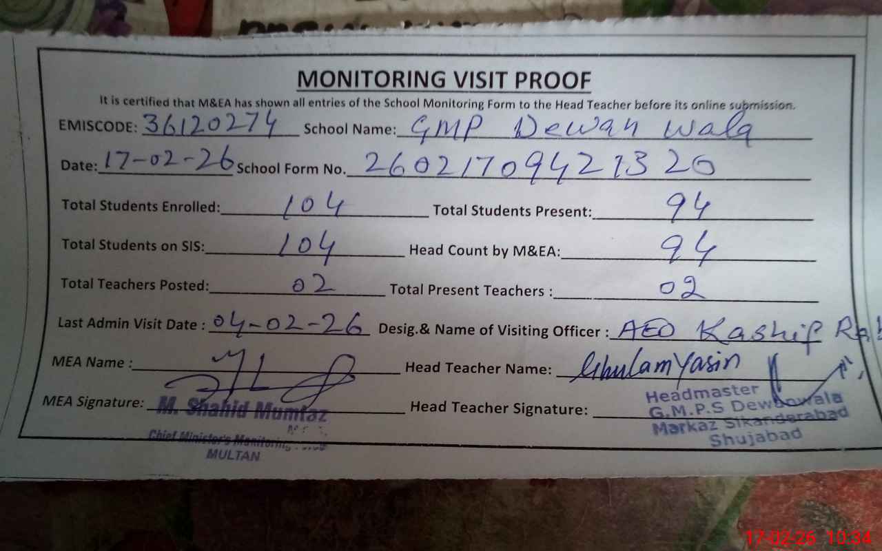 | EMIS Code: 36120274 | Name of School: GMPS DIWAN WALA | |||