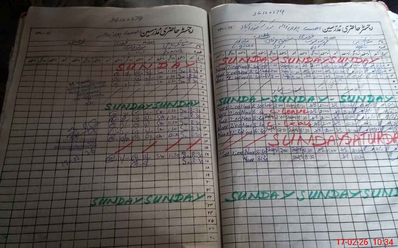 | CNIC | Full Name | Designation | R/C | Absence During Last Calender Month |