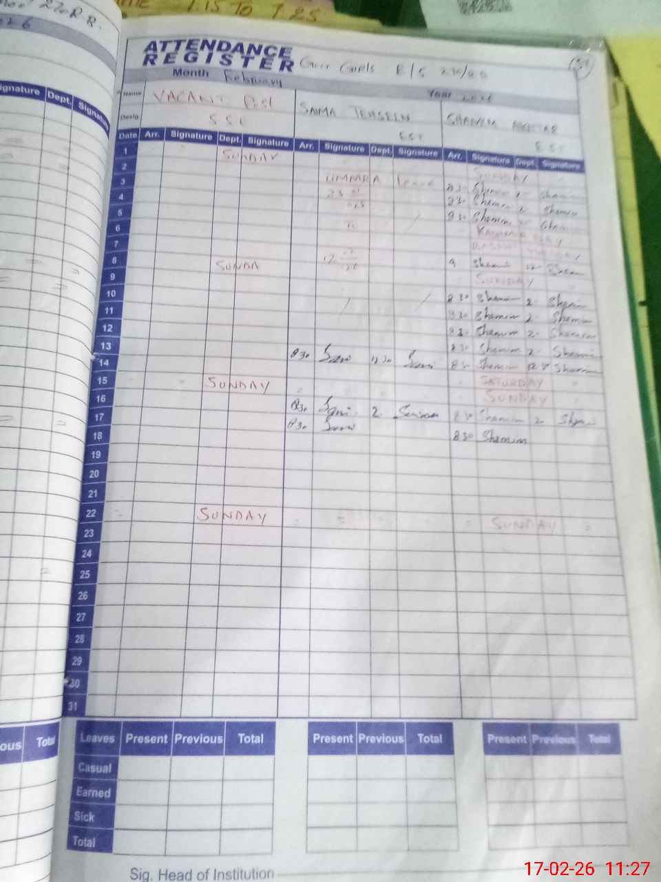 | 33**** | La**** As**** | PST Science/Maths | Regular | 0 | 0 | 0 | 0 | 0 | 0 | 0 | 0 | 0 | Absent (Un-Authorized) |