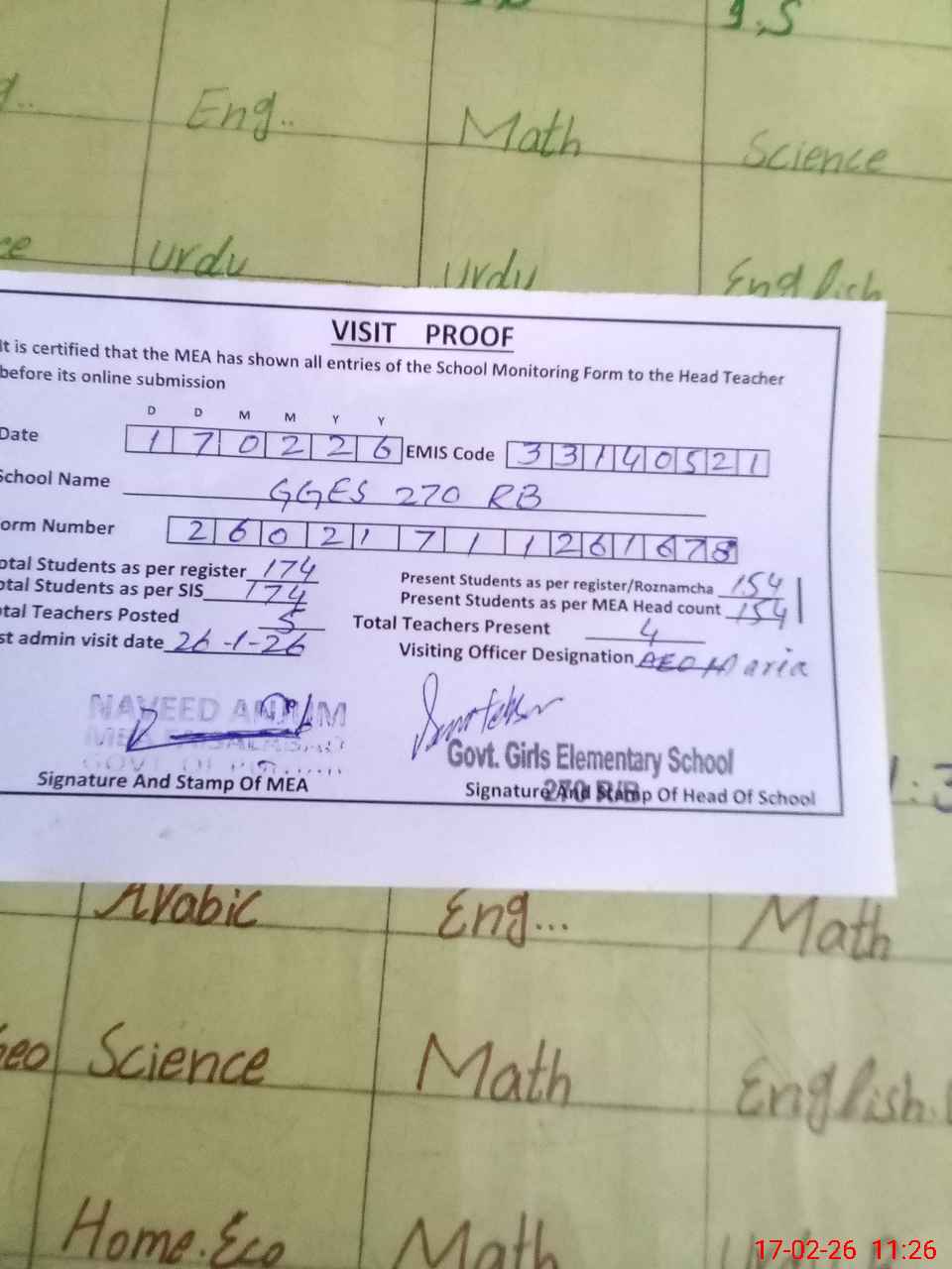 | EMIS Code: 33140521 | Name of School: GGES CHAK NO 270 RB | |||